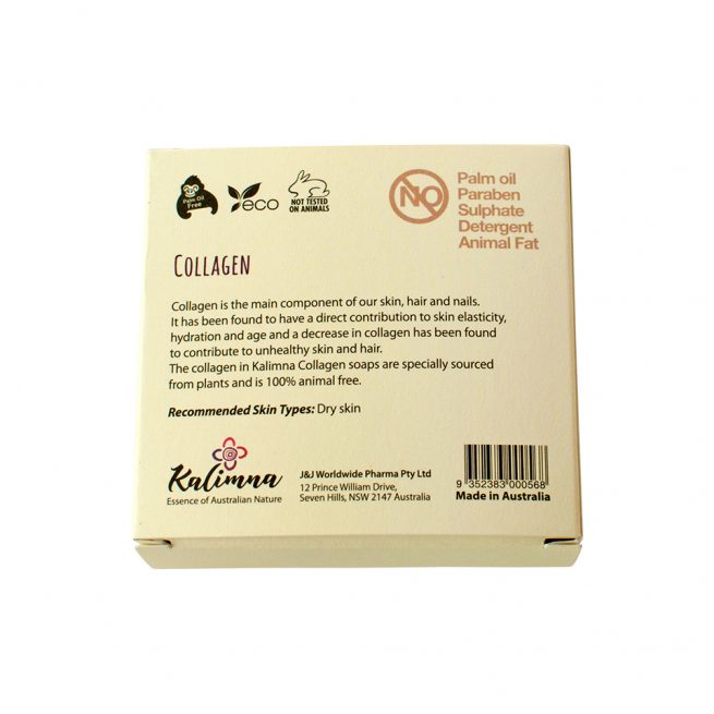 The collagen in Kalimna Collagen soaps are specially sourced from plants and is 100% animal free.