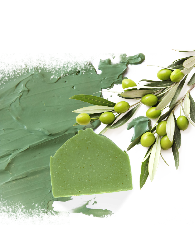 Olive clay, Eucalyptus essential oils, Dried olive extract powder, Coconut oil